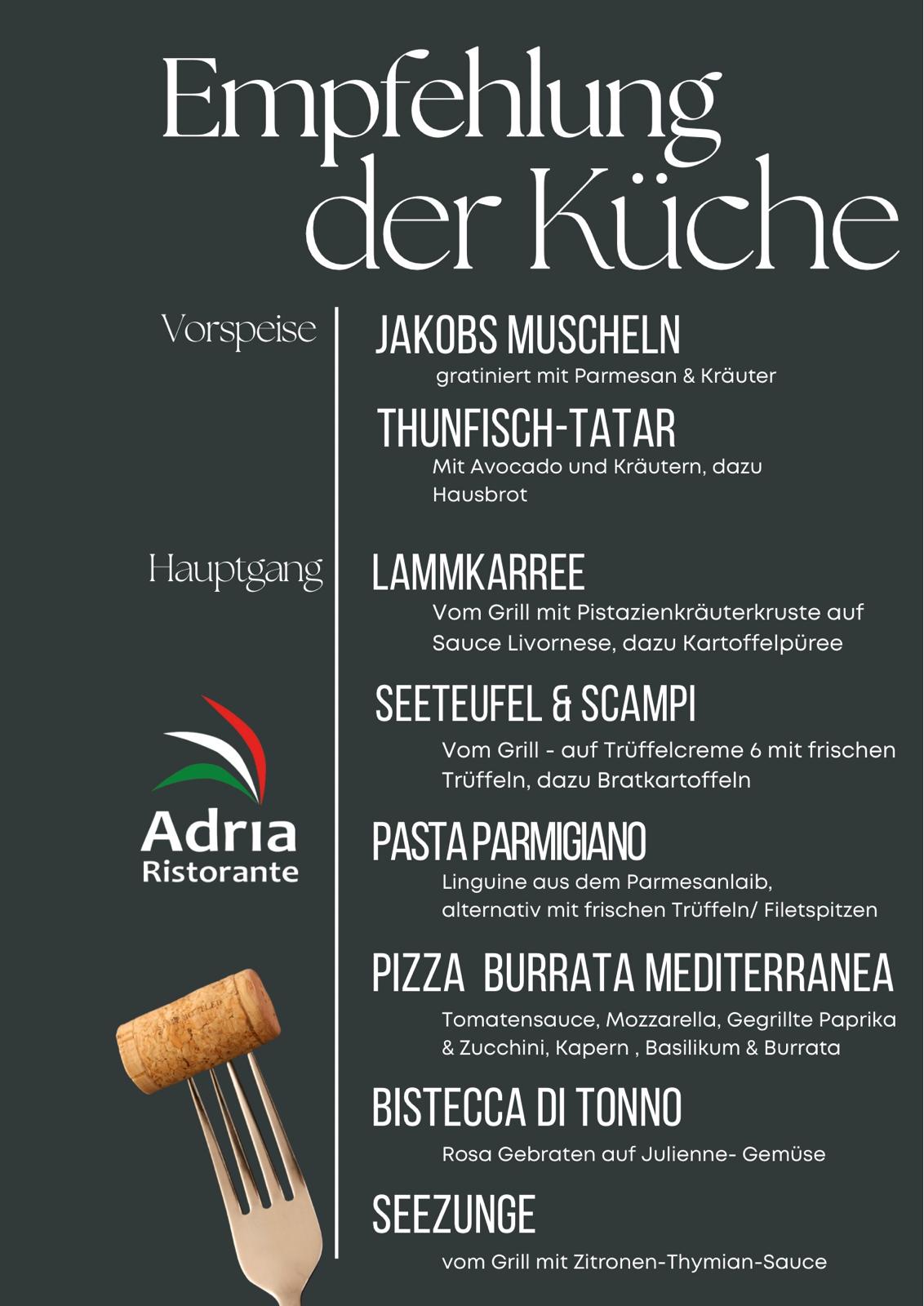 Unser Lokal eignet sich auch für Feiern (Weihnachtsfeier, Geburtstage etc.), sowie auch für geschlossene Gesellschaften. Tischreservierungen sind bei geschlossener Gesellschaft bis zu 75 Personen möglich. Wir bieten Ihnen mediterrane italienische Küche, Fischspezialitäten, Grillspezialitäten und womöglich die beste Pizza.